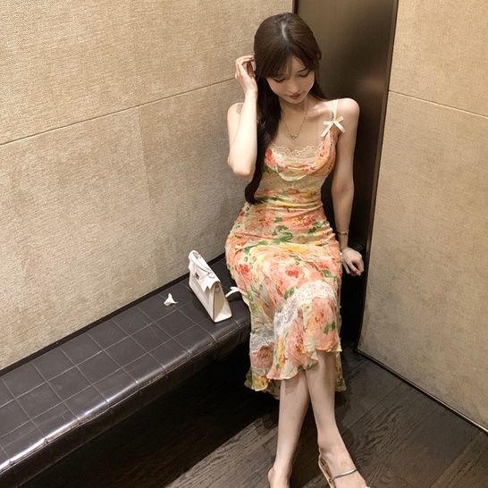 Giới thiệu Đầm Hai Dây Mỏng Vừa Vặn In Họa Tiết Hoa Phong Cách Bohemian Hàn Quốc Thời Trang Mùa Hè Hàng Mới Dành Cho Bạn Nữ