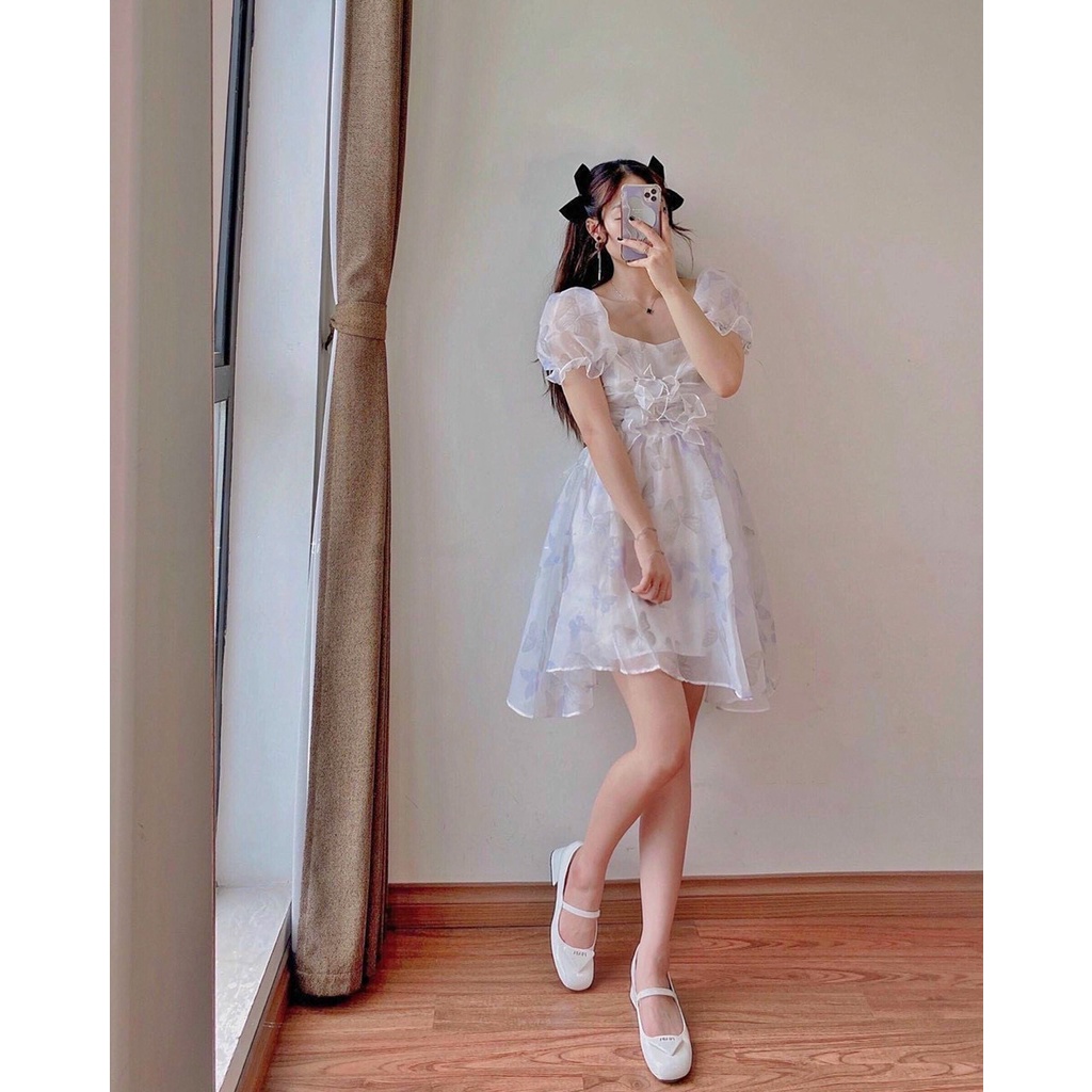 Giới thiệu Đầm hoa nhí kiểu cách đan ngực tay bồng thắt nơ sau dáng ngắn công chúa đi biển, đi tiệc, kỷ yếu xinh