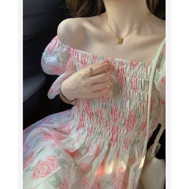 Váy chất voan cát hàn siêu đẹp Hoạ tiết hoa hồng nhẹ nhàng Số đo: Váy dài 107cm, mẫu 1m60 mang gần giữa bắp chân Ngang ngực (chưa giãn): 25cm co giãn vòng 1<88cm Dài tay: 33cm Váy 2 lớp chất voan cát siêu đẹp luôn ạ, có thể mặc kiểu thường hoặc trễ vai Freesize<55kg