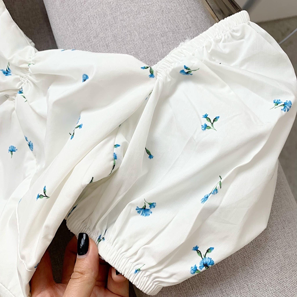 Giới thiệu Đầm hoa nhí xanh xẻ tà dáng dài 2 lớp thiếu nữ mùa hè kiểu Pháp, Váy hoa nhí ulzzang siêu xinh Kozoda D64