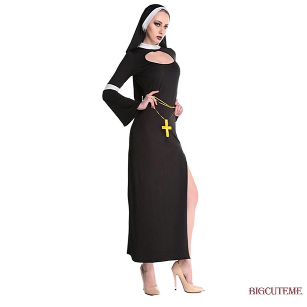 Trang phục Halloween, Halloween nữ tu dành cho người lớn dài tay áo xẻ cao bên Cosplay ăn mặc lạ mắt