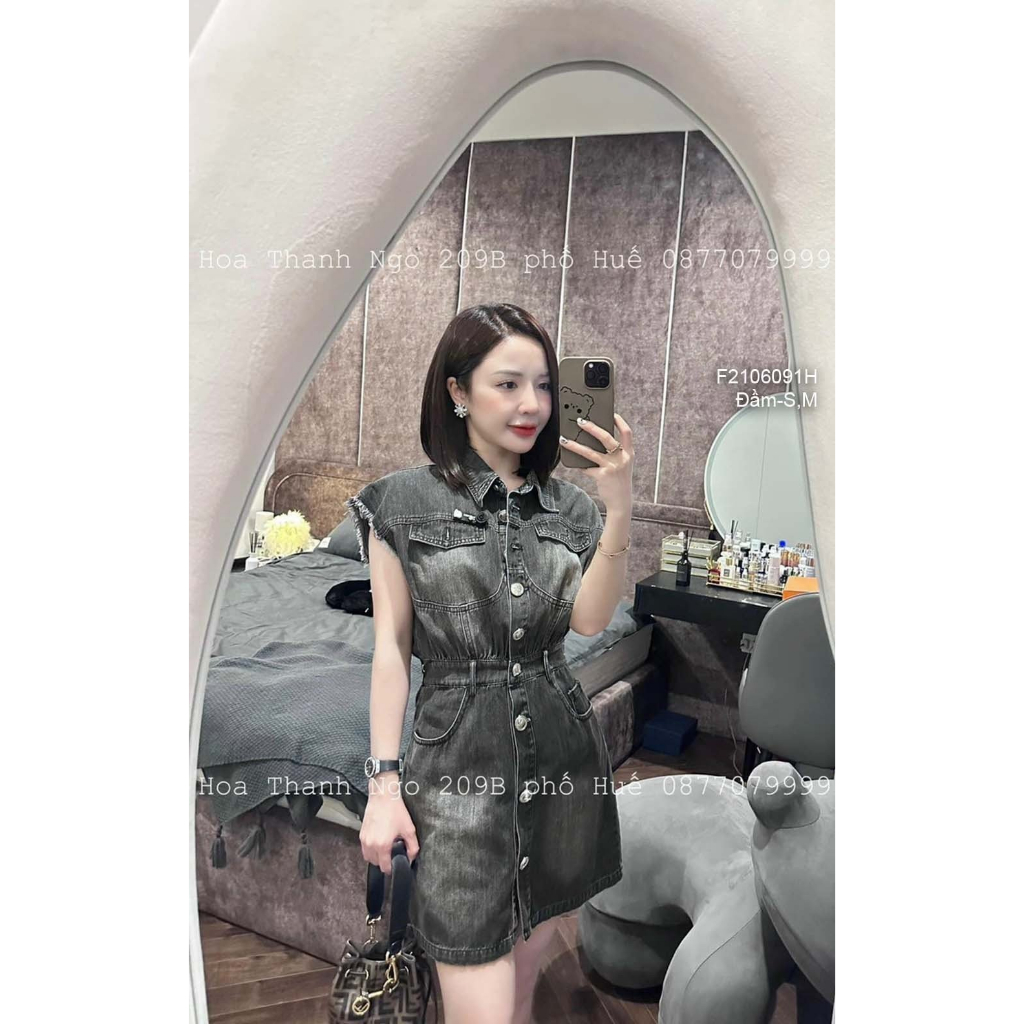 Đầm jean dáng ngắn sát nách phối nút ngực đắp túi nắp cổ bẻ hàng đẹp!