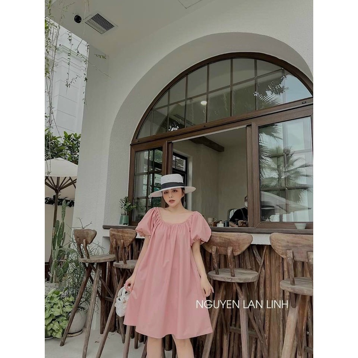 Giới thiệu Đầm kate cổ thuyền tay hoa, đầm nữ mixi xếp ly không họa tiết