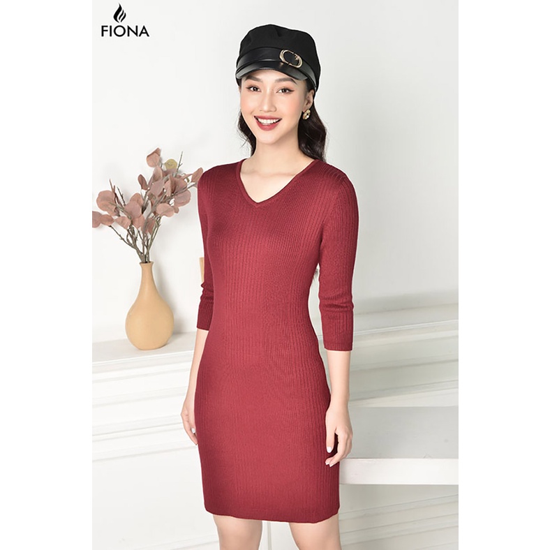 Giới thiệu Đầm len cổ tim dáng ôm FIONA, váy đầm len đẹp, đầm len body, tay lỡ D859073