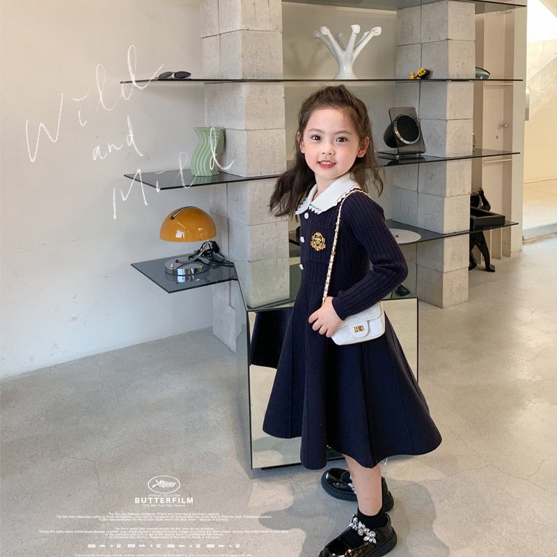Giới thiệu Đầm Len Tay Dài Cổ Bẻ Thời Trang Mùa Thu Dành Cho Bé Gái