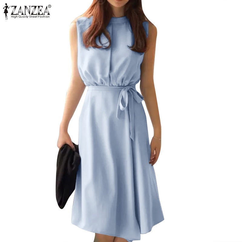 Giới thiệu Đầm lửng Zanzea không tay ôm eo phong cách hàn quốc thanh lịch cho nữ