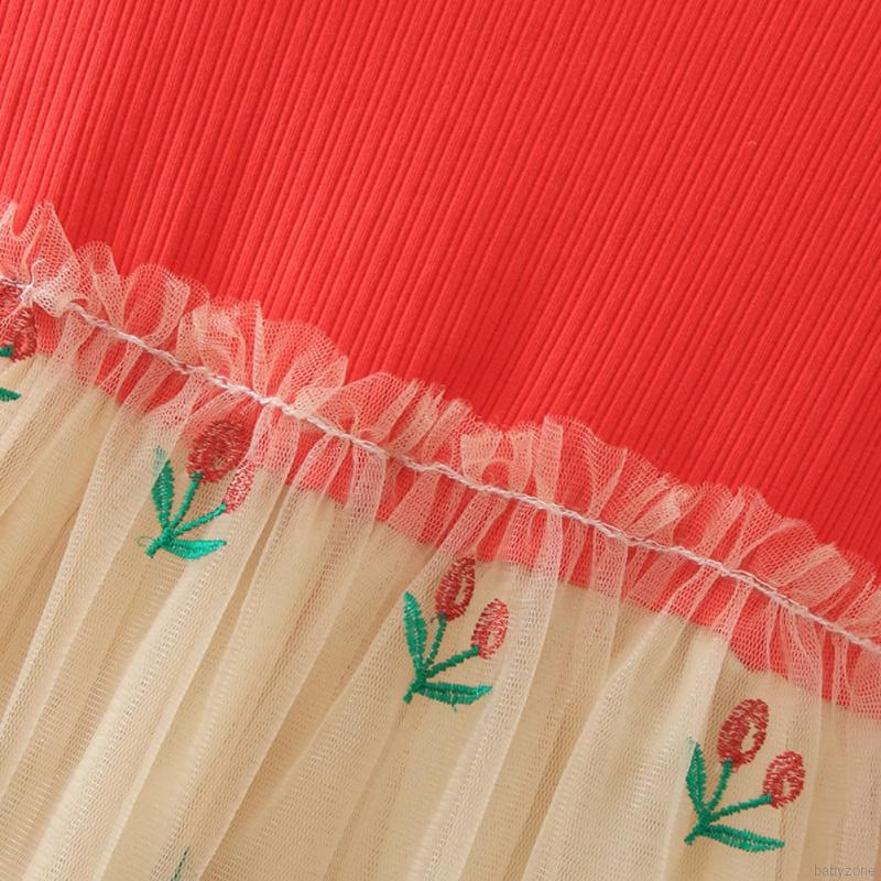 Long sleeve casual cherry print girl cute mesh design dress, which will make your kids look cute and attractive