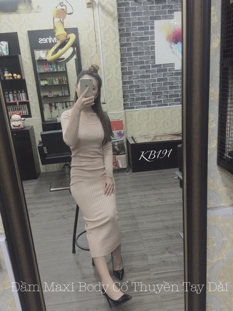 Giới thiệu Đầm Maxi Body Cổ Thuyền Tay Dài - Chất Len Đũa Quảng Châu Cao Cấp