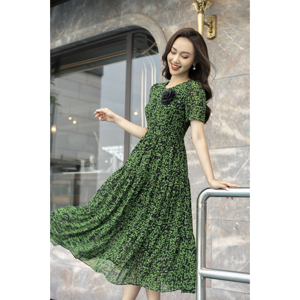Đầm maxi dáng dài, váy công sở nữ thiết kế họa tiết chữ xanh, đính hoa trang trí FIONA F452285 ---------------------------------------------