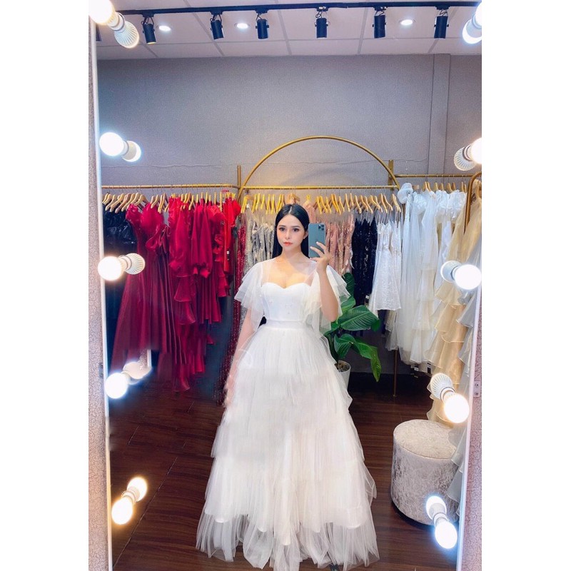 Giới thiệu Đầm maxi dự tiệc xếp tầng tay loa TRIPBLE T DRESS -size M/L (kèm ảnh/video thật) MS302V
