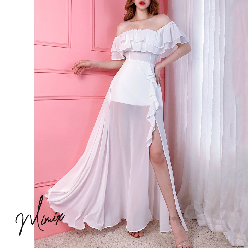 Giới thiệu Đầm maxi nữ bèo tầng có lót xẻ tà MIMIX BK8210