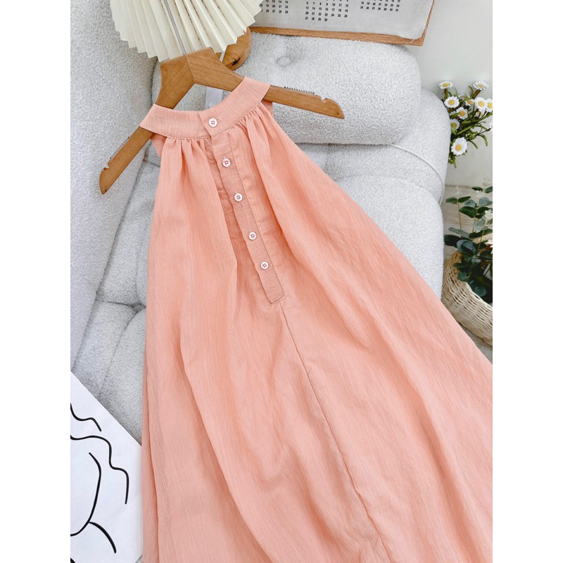 Đầm maxi yếm gài nút dáng xoè style dễ thương