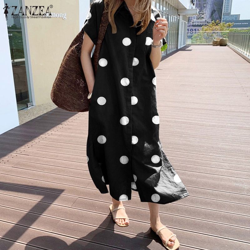 Giới thiệu Đầm maxi ZANZEA tay ngắn dáng rộng họa tiết chấm bi phong cách vintage thời trang cho nữ