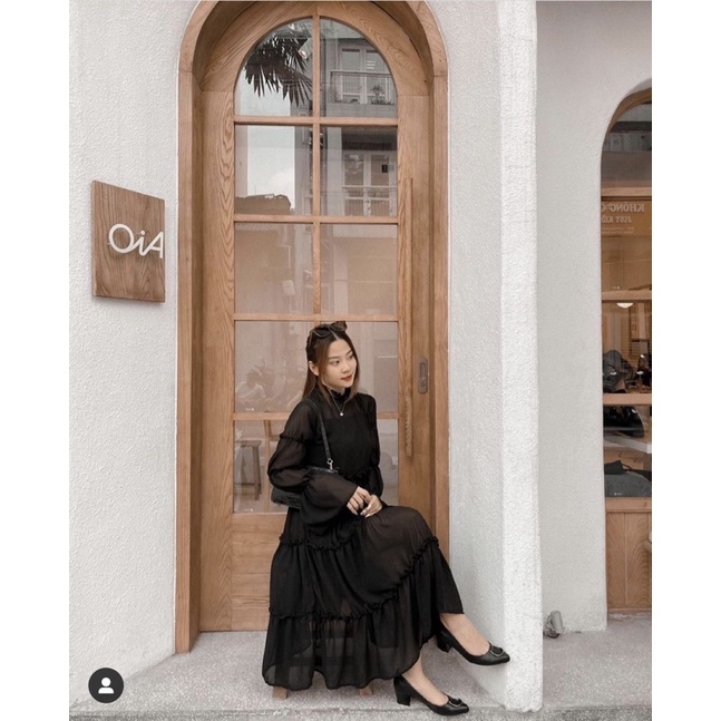 Giới thiệu ĐẦM MIDI ĐEN TAY BO CHUN (TH) ĐẦM MIDI BBD ĐEN TẦNG🖤