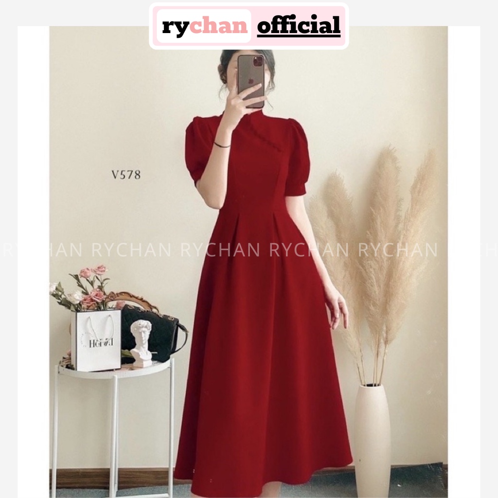 Giới thiệu Đầm Midi Đỏ Cổ Tàu Trung Hoa Dáng Dài Siêu Đẹp, Đầm Chụp Hình Ngoại Cảnh - DX555