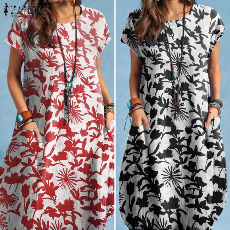 Giới thiệu Đầm midi ZANZEA cổ tròn in họa tiết thời trang cho nữ
