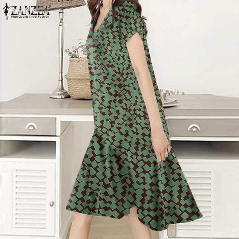 Giới thiệu Đầm midi Zanzea tay ngắn cổ chữ V họa tiết da báo duyên dáng sành điệu cho nữ