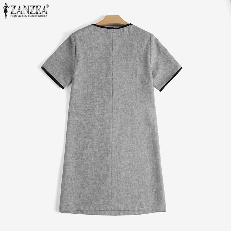 Giới thiệu Đầm midi ZANZEA tay ngắn cổ tròn màu trơn thời trang cho nữ