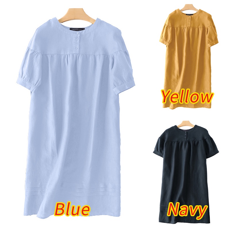 Giới thiệu Đầm midi Zanzea tay ngắn cổ tròn dáng rộng cài nút phong cách đơn giản cho nữ