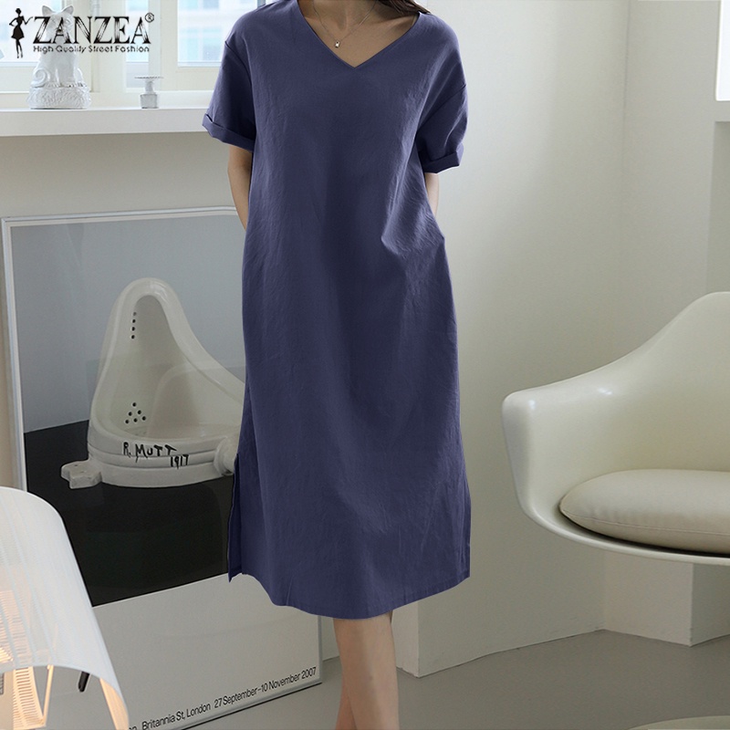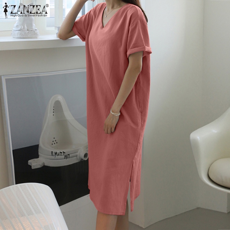 Giới thiệu Đầm midi ZANZEA tay ngắn cổ v xẻ tà thời trang cho nữ