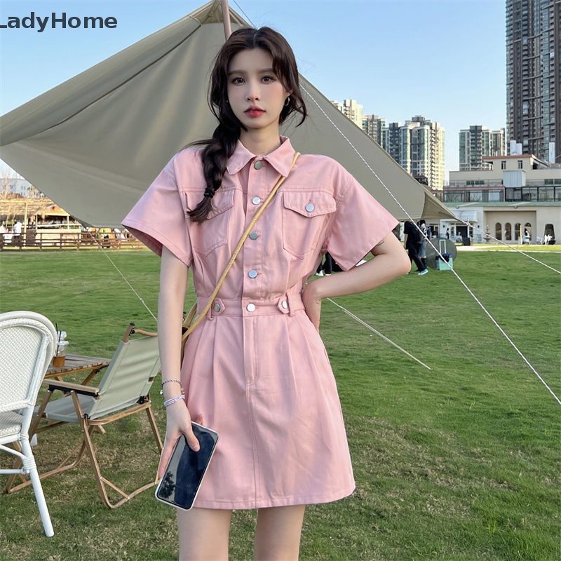 Giới thiệu Đầm Mini Dáng Chữ A Cổ Bẻ Cài Khuy Phối Túi Thời Trang Cho Bạn Gái