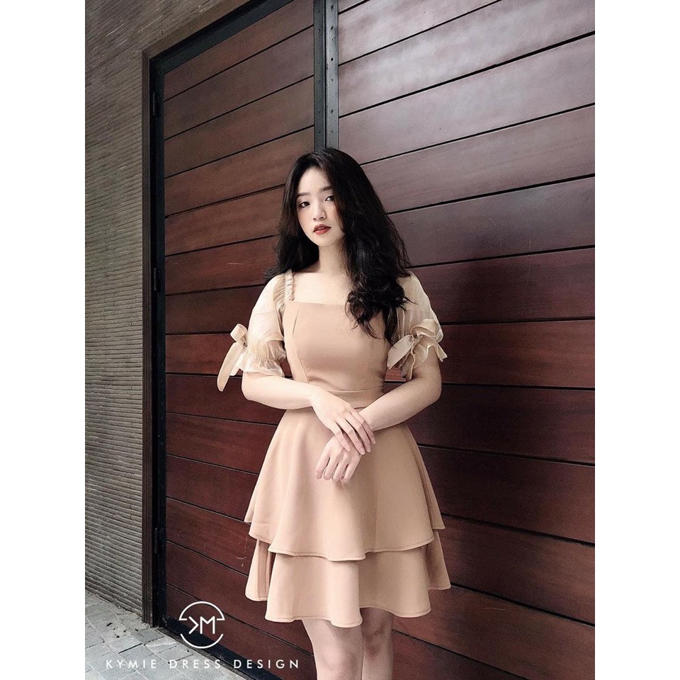 Giới thiệu Đầm New] Đầm Cao Cấp 2 Tầng Tay Lụa Tơ Cột Nơ Thời Trang Nữ Sam Closet Free Size 40-55kg