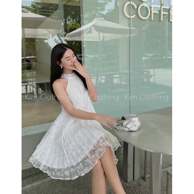 Giới thiệu Đầm ngắn nữ, đầm nữ dáng xoè xếp li cổ yếm