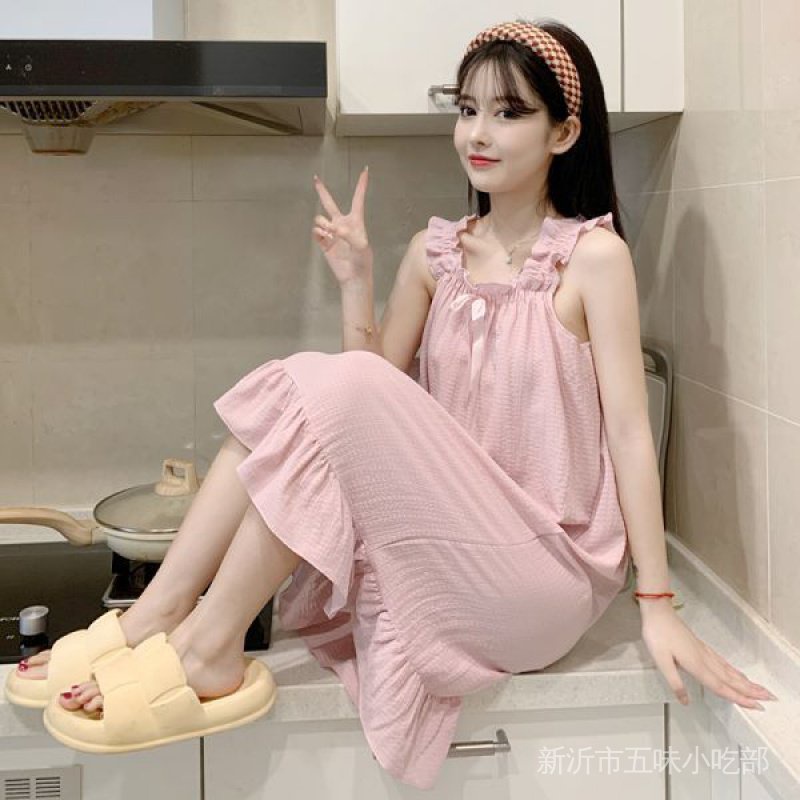 Tên vải thông dụng: Cotton và vải lanh Chất liệu vải chính: Cotton Nội dung thành phần: 30% trở xuống Chiều dài tay áo: Không tay Loại cổ áo: Dây treo Phong cách mặc nhà: Ngọt ngào Độ dày: phần mỏng Độ tuổi sử dụng: Thanh niên (18-25 tuổi) Chi tiết về kiểu dáng quần áo: Màu đồng nhất, có bèo nhún