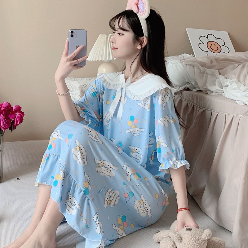Giới thiệu Đầm Ngủ Lụa Dáng Rộng Tay Ngắn Cổ Búp Bê Họa Tiết Hoạt Hình Cinnamoroll Babycinnamoroll Dễ Thương