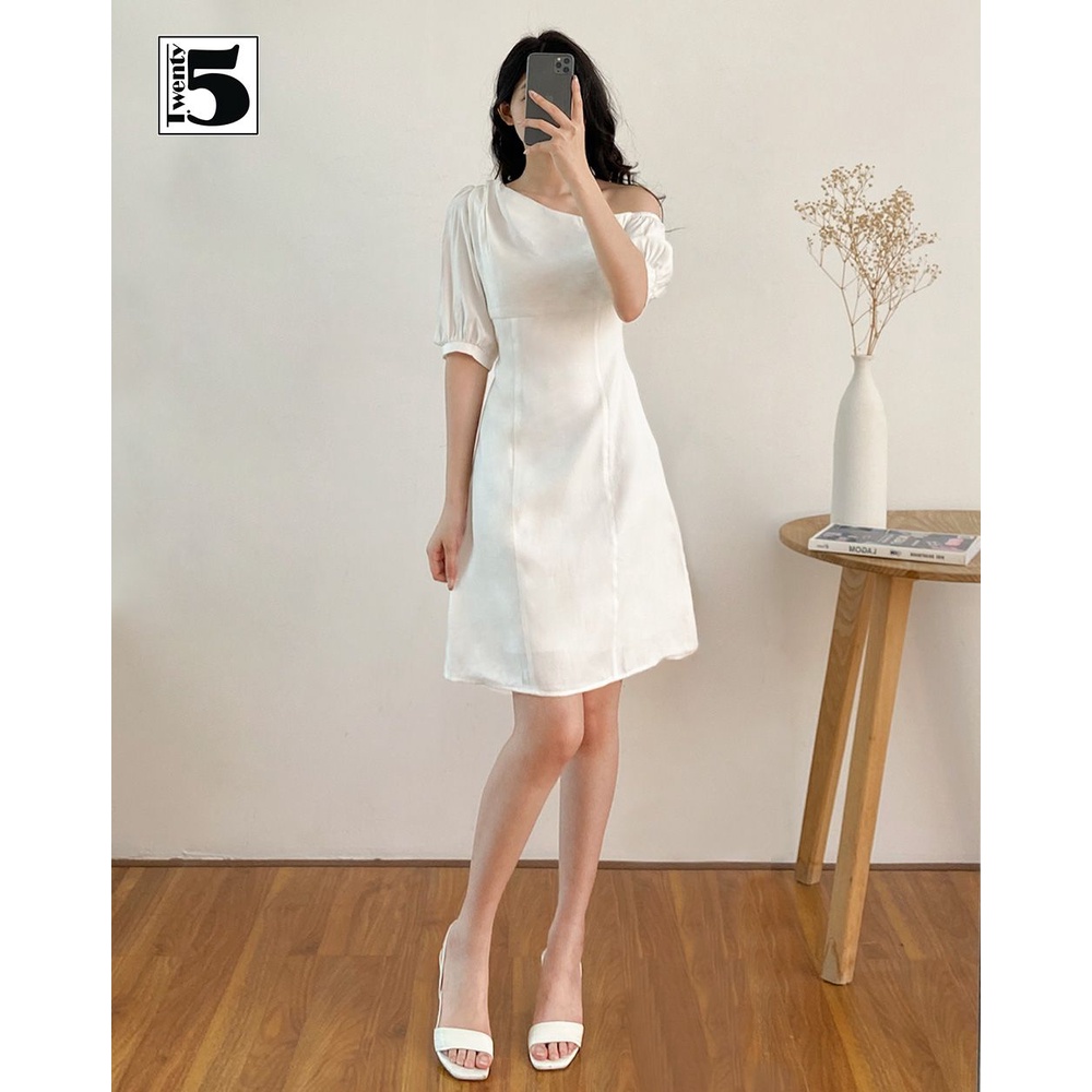Giới thiệu Đầm nhún lệch vai tay bo nhún chân váy xòe Twentyfive T258