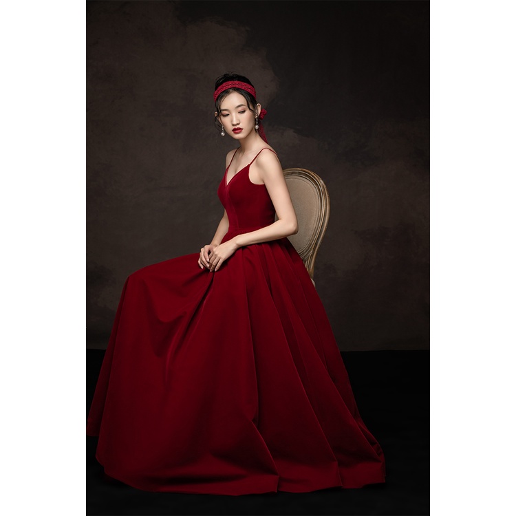 Giới thiệu Đầm nhung dạ hội cao cấp hai dây hở lưng màu đỏ H98 Hỉn Hỉn Store