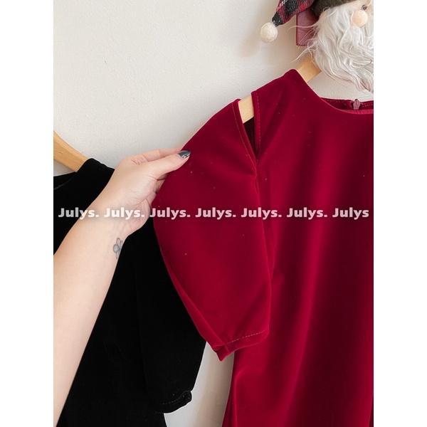 - Chất liệu : Váy chất nhung lì 1 lớp mỏng nhẹ nhưng lên dáng rất đứng form nha. Váy có khoá sau, dáng tay bồng, xẻ nhỏ bên vai. - Ảnh sản phẩm do JULYS tự chụp thật 100% và có chèn logo tên shop. Màu sắc thực tế của sản phẩm sẽ có sự chênh lệch ~5% do điều kiện ánh sáng, mong khách hiểu và thông cảm giùm em nha ❤ - 2 màu : đỏ thẫm/đen - Mình cao 1m57 46kg, số đo 83-63-90 mặc như hình ạ