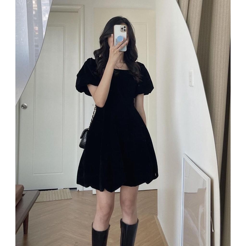 Giới thiệu Đầm nhung xòe tay bồng Quảng Châu thiết kế dáng ngắn tiểu thư siêu xinh, Váy nữ dự tiệc sang trọng rẻ đẹp