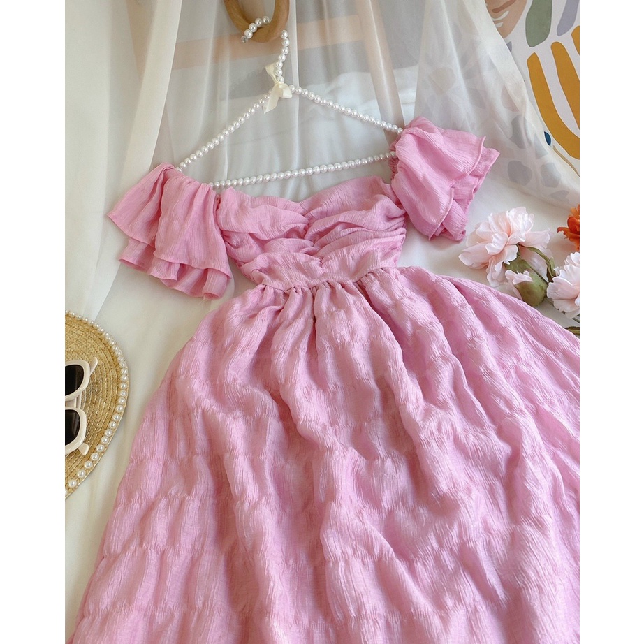 Giới thiệu đầm nữ dáng dài trễ vai (có mút) màu sắc nổi bật dễ thương
