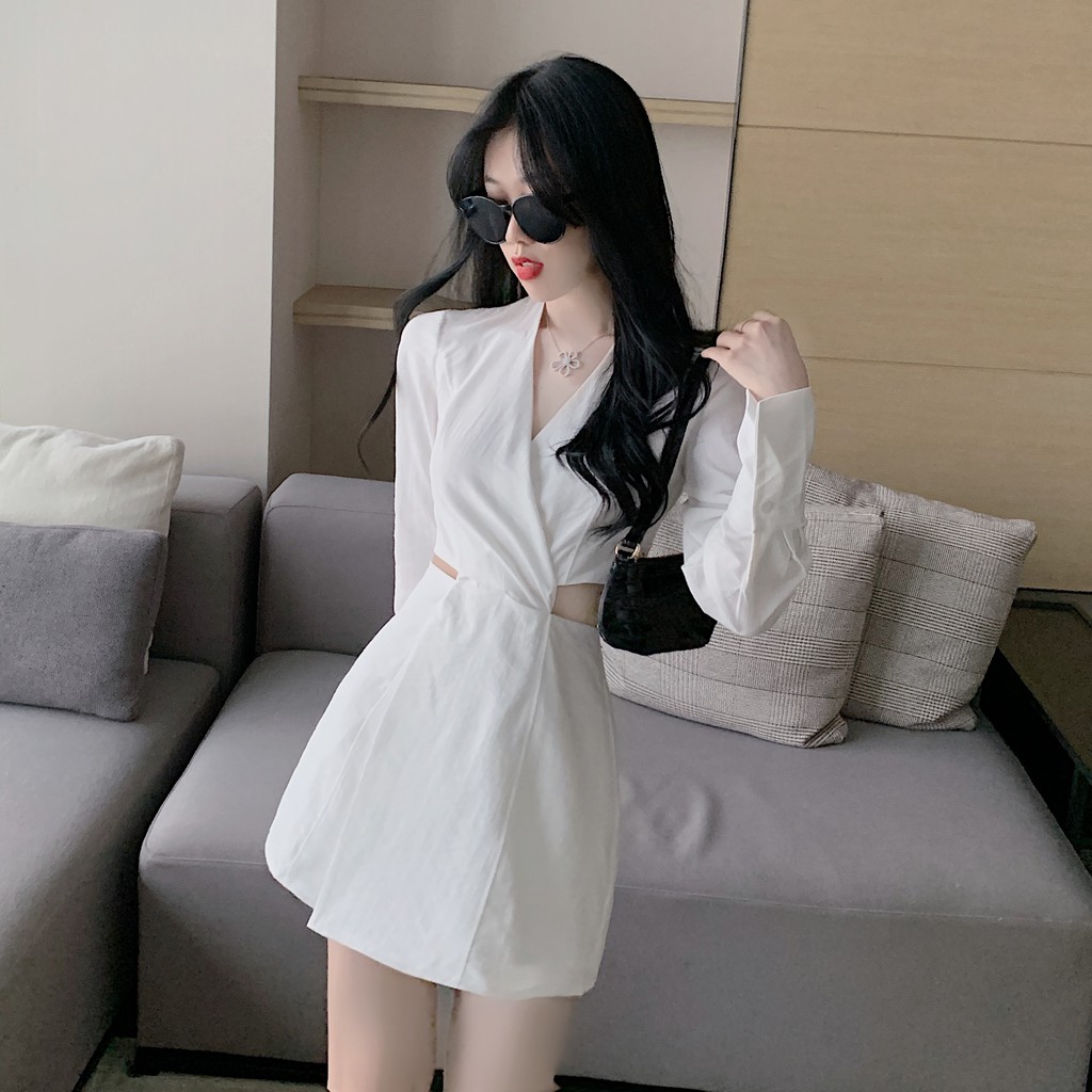 Đầm nữ dáng ôm sơ mi tay dài mini hở eo Emilyshop ulzzang