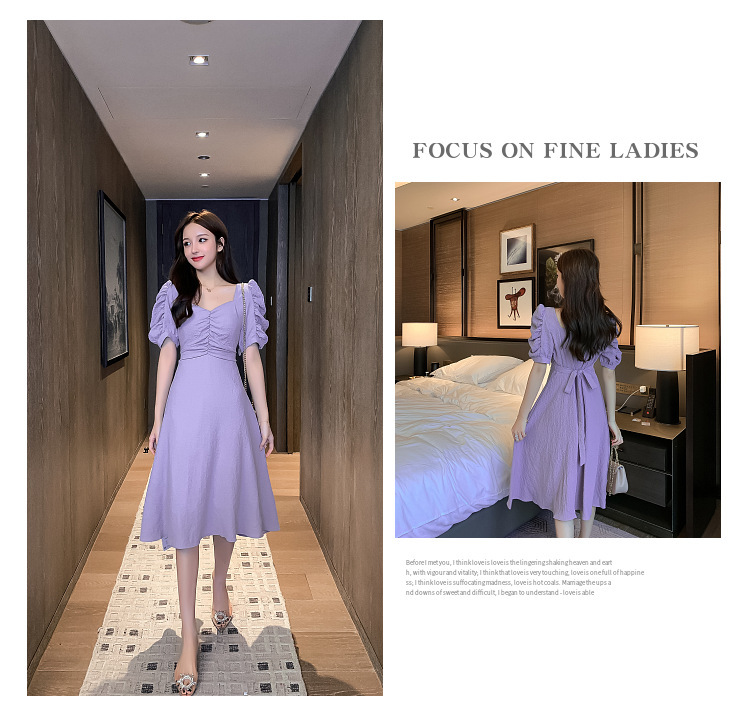 Giới thiệu Đầm Nữ Tay Phồng Cổ Chữ V Màu Trơn Thời Trang