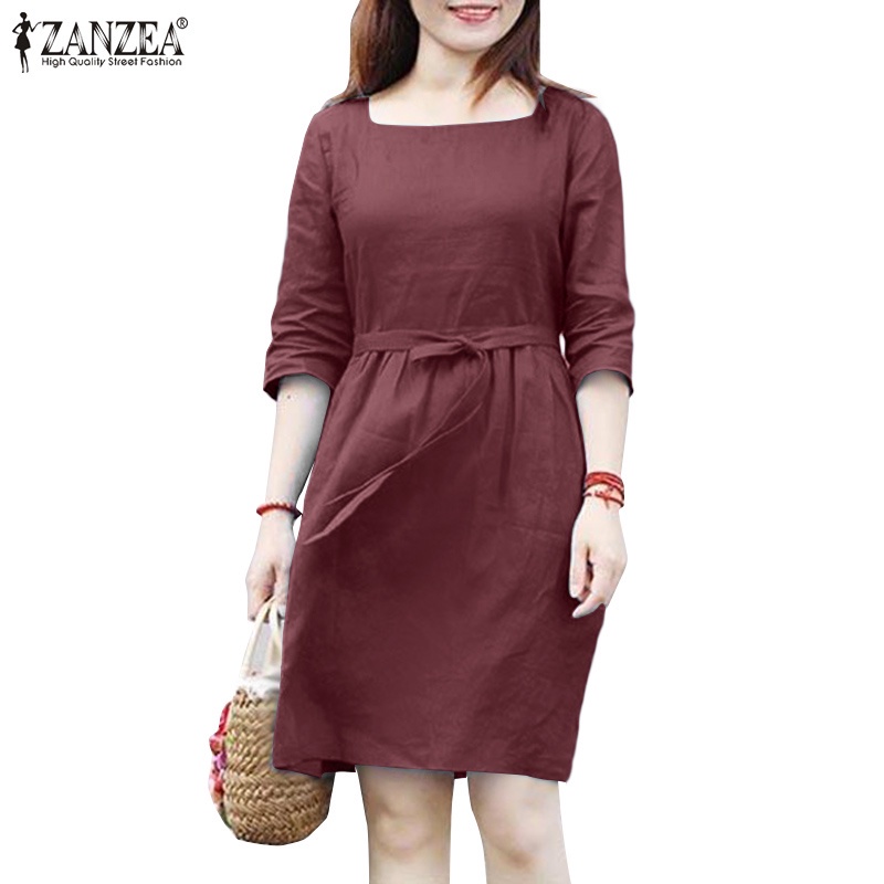 Giới thiệu Đầm nữ ZANZEA dáng chữ A ngắn cổ vuông eo cao tay lỡ màu trơn