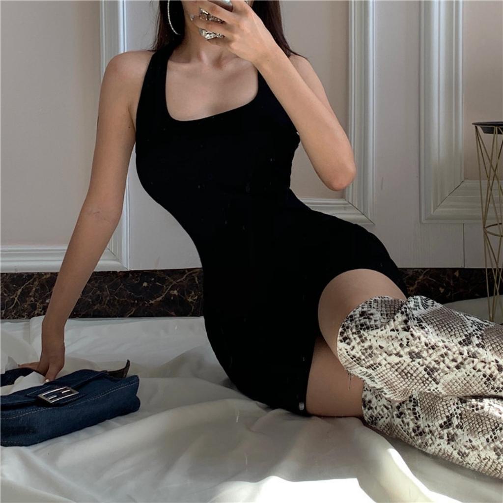 Giới thiệu Đầm ôm body cổ bẻ phối nút xẻ tà Xquin, Váy ôm body cổ polo chất thun gân tăm siêu co dãn