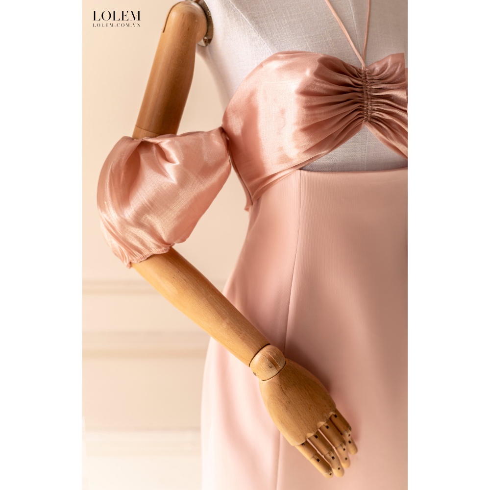 Giới thiệu Đầm ôm body LOLEM DO185 xẻ tà vải tăm Nhật dây cổ phối organza tay rớt hở lưng