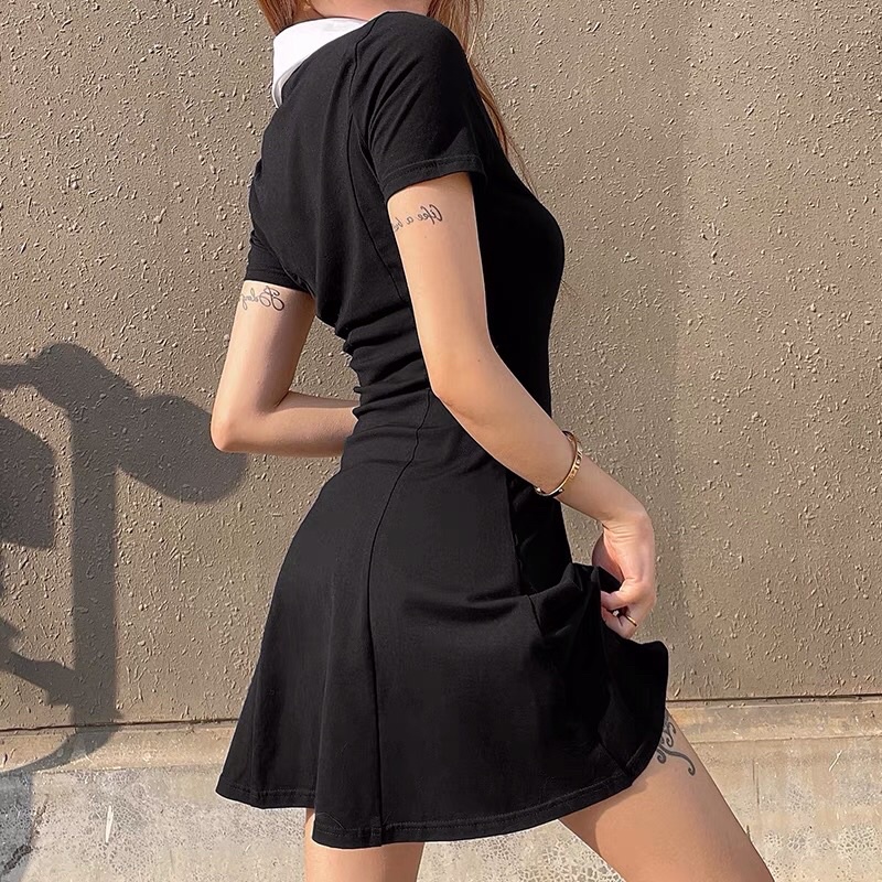 THÔNG TIN SẢN PHẨM: - Tên sản phẩm: Đầm Polo Ngắn Tay Phối Viền Cổ Sơ Mi - Thương hiệu: ILY DESIGN - Chất liệu: Thun cotton chính phẩm mềm mịn, dày dặn, co giãn tốt - Màu sắc: đen - Kiểu dáng: ôm body thiết kế chân váy xòe - Form <54kg chiều cao cân đối Dài đầm 85cm, dài tay 16cm Vai 32cm - V1 68-96cm - Vòng xoè 132cm Cúc thật, có thể mở, không có quần trong, không có khoá kéo - Size: freesize