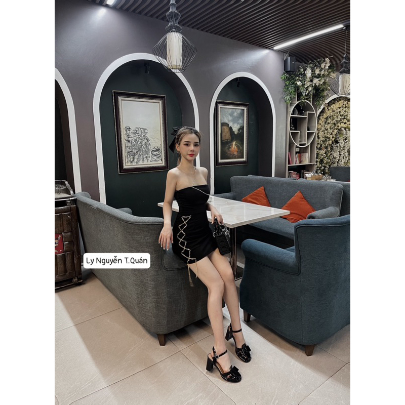 Giới thiệu Đầm sexy dây đá chéo sườn phối xích siêu chất
