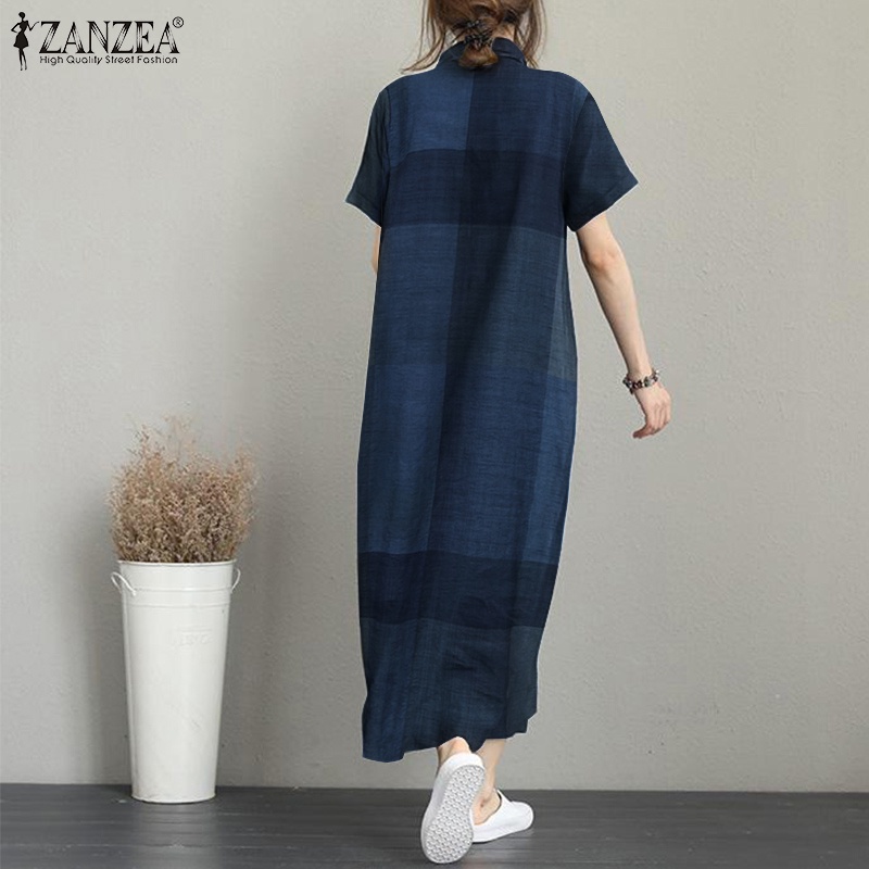 Giới thiệu Đầm sơ mi ZANZEA tay ngắn họa tiết caro thời trang sành điệu cho nữ