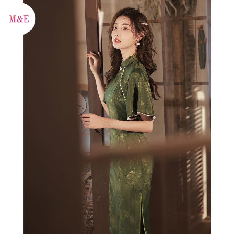 Giới thiệu Đầm Sườn Xám Cách Tân Dáng Dài Màu Xanh Lá Đậm Phong Cách Năm Mới 2023