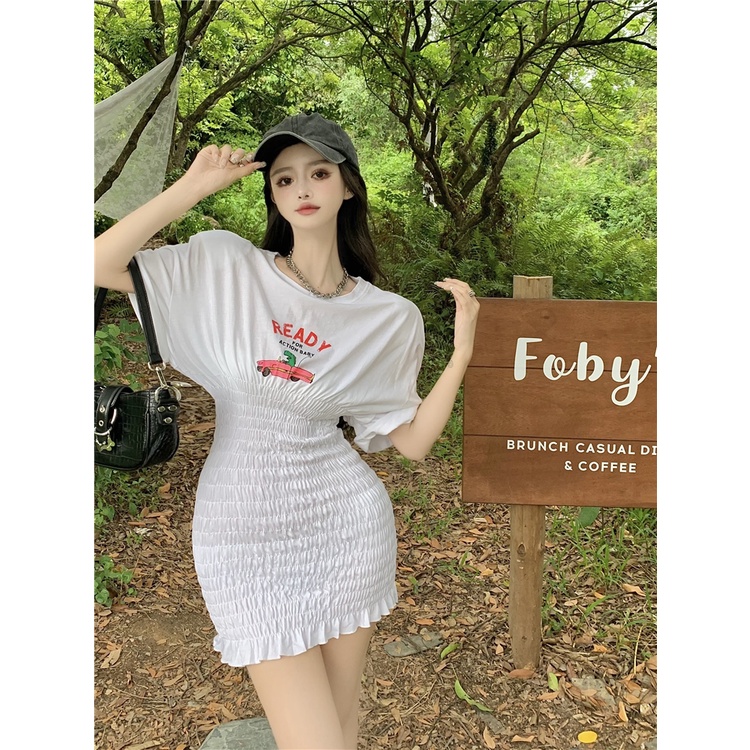 Giới thiệu Đầm Tay Ngắn Cổ Tròn Dáng Ôm In Họa Tiết Hoạt Hình Phong Cách Hàn Quốc Thời Trang Mùa Hè Xinh Xắn Cho Nữ