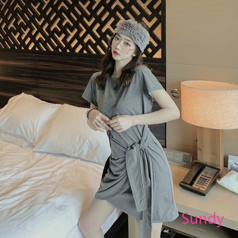Hình thức kết hợp: một mảnh Phong cách: túi đeo hông váy Chiều dài đầm: đầm ngắn Kiểu cổ áo: cổ tròn Chất liệu vải: cotton Tỉ lệ thành phần: 30%
