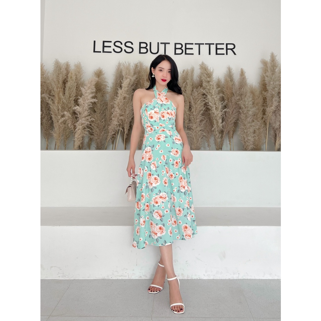 Giới thiệu Đầm thiết kế Wonderhouse cổ yếm dáng xòe chất vải tơ thêu hoa dự tiệc, đi biển sang chảnh - Natalie Dress