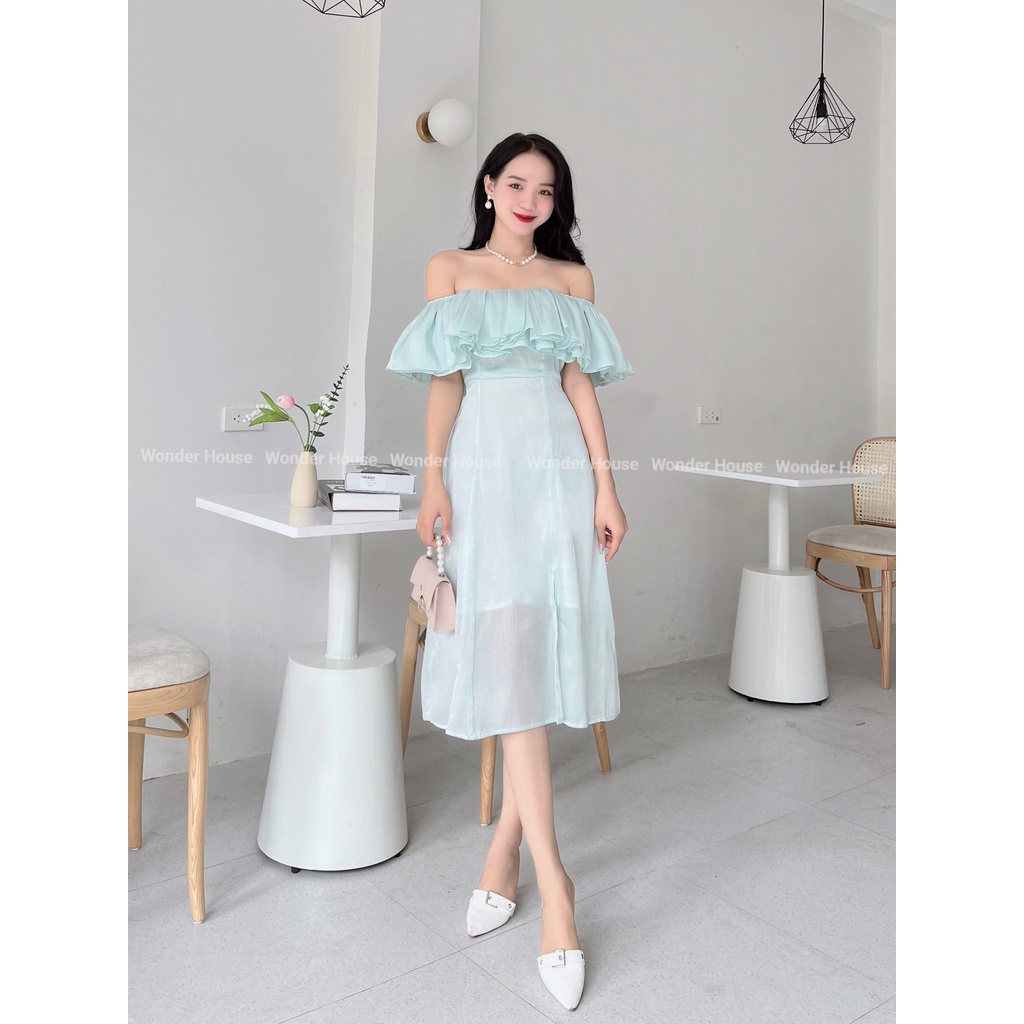 Giới thiệu Đầm thiết kế Wonderhouse trễ vai bèo form xẻ tà chất lụa ánh sang chảnh dự tiệc, dạo phố - Mely Dress