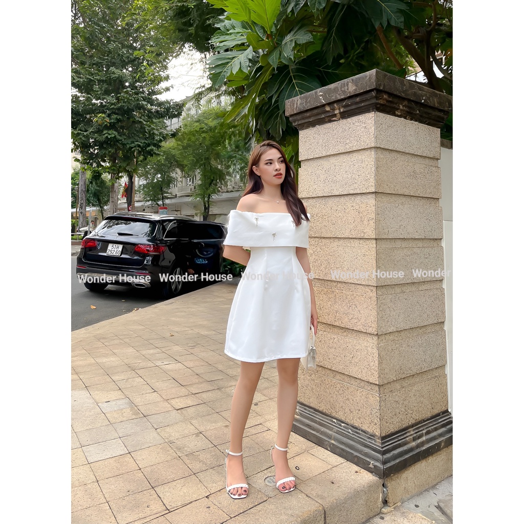 Giới thiệu Đầm thiết kế Wonderhouse trễ vai đính nơ đá lấp lánh dự tiệc, dạo phố nữ tính - Colie Dress