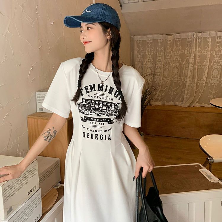 Giới thiệu Đầm Thun Dài Qua Gối Dáng Rộng In Họa Tiết Chữ Phong Cách Mỹ Cổ Điển Thời Trang Cho Nữ