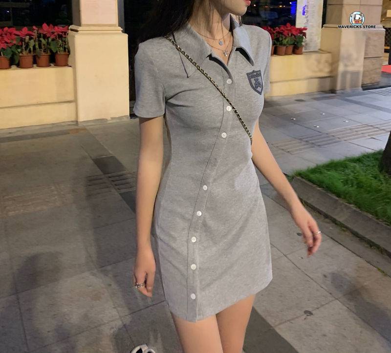 Giới thiệu Đầm thun polo tay ngắn cổ bẻ phong cách Hàn Quốc thời trang mùa hè cho nữ